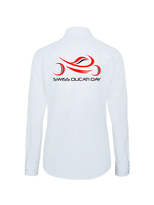 Women, Langarm, weiss, mit Swiss Ducati Day Logo auf der Rückseite und Schriftzug am Arm.