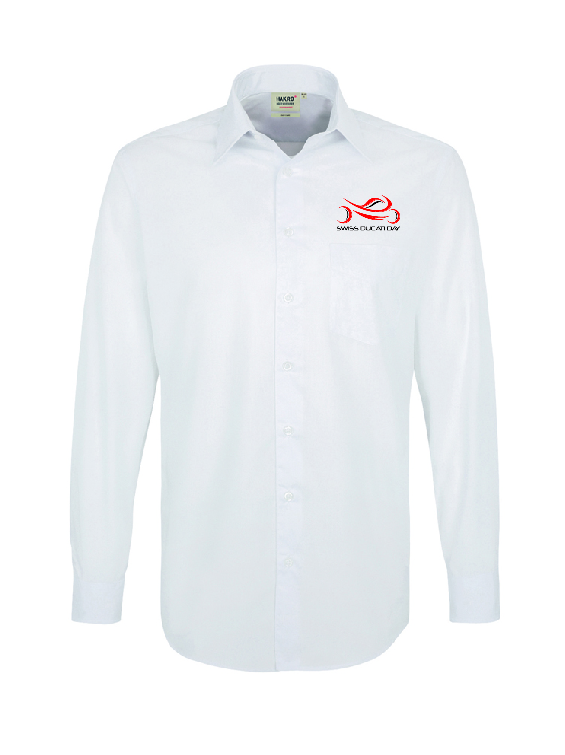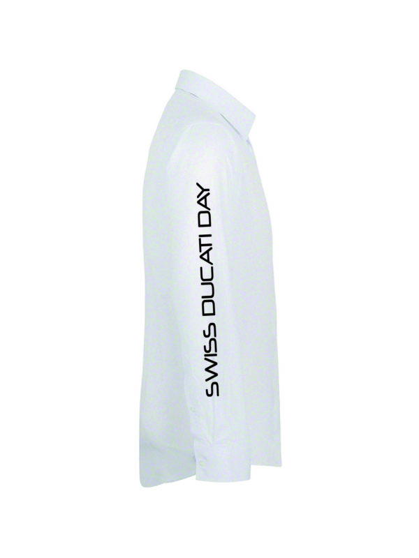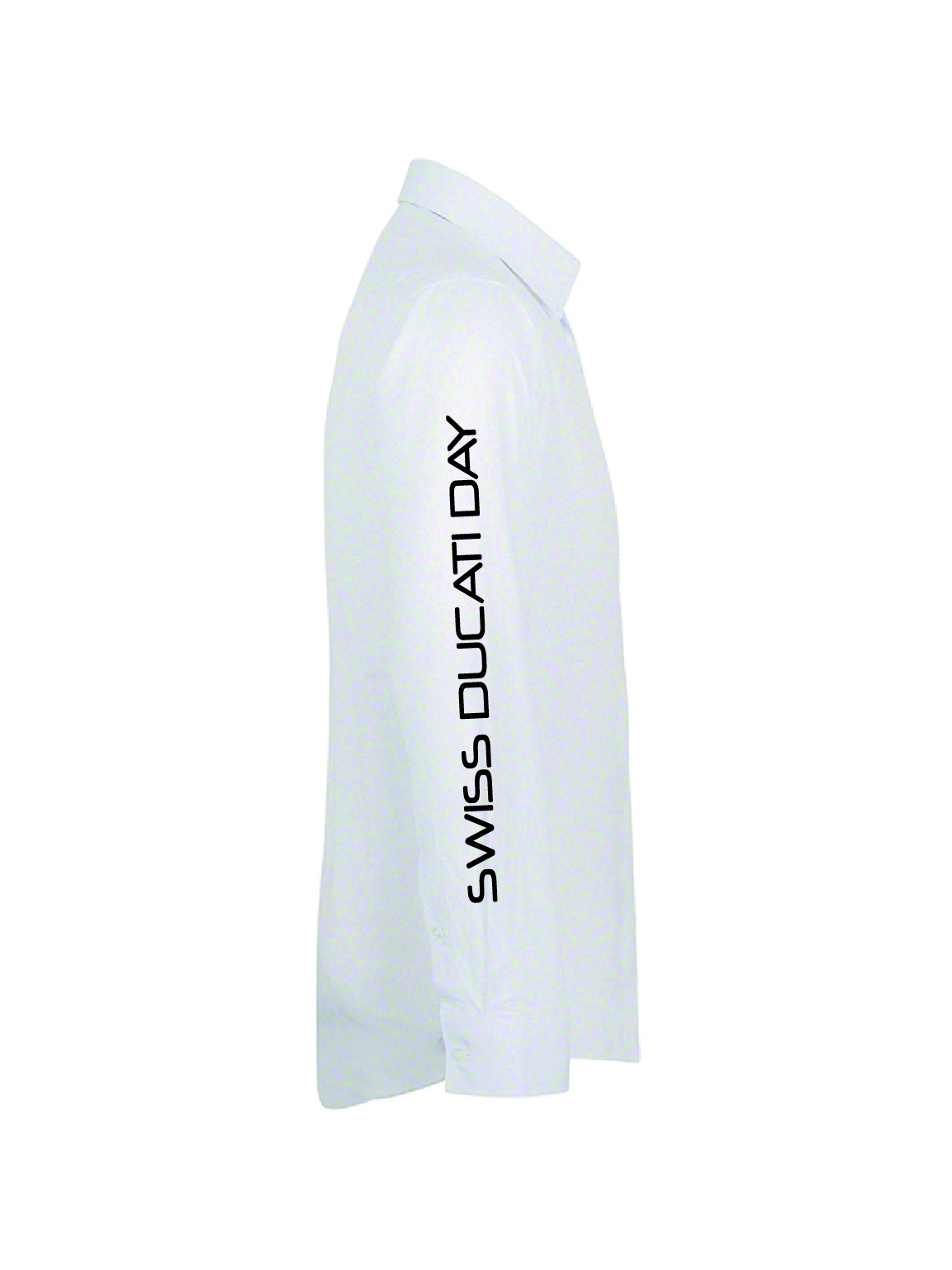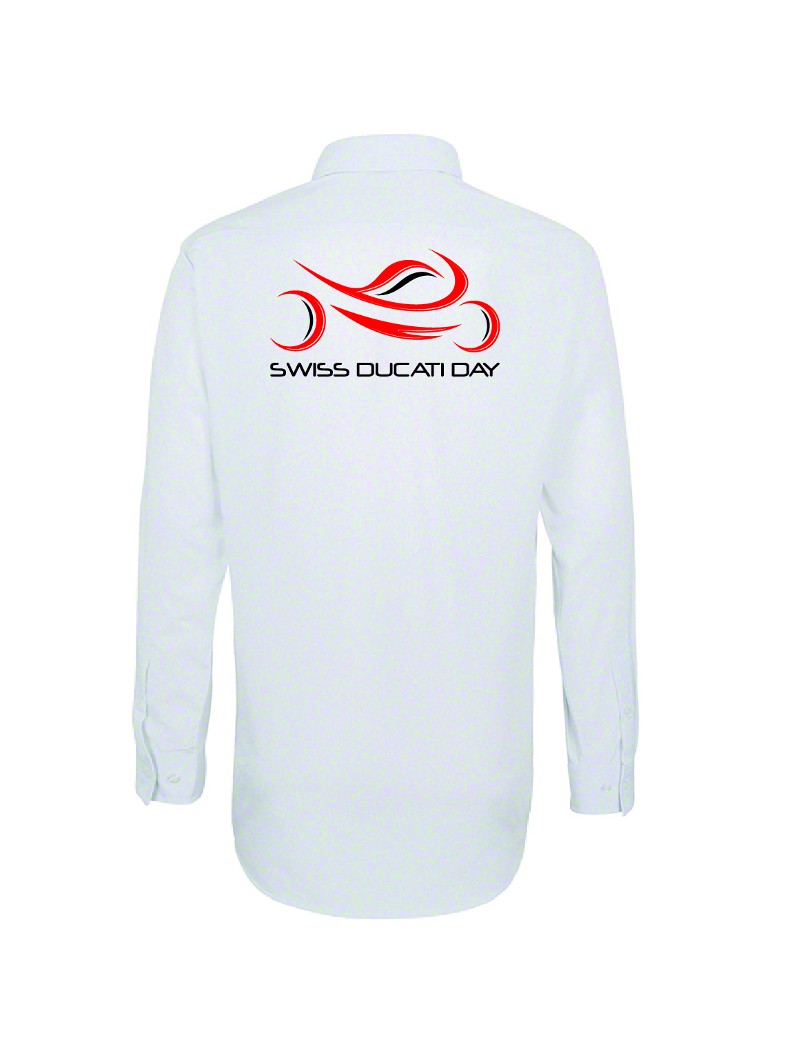 Langarm, weiss, mit Swiss Ducati Day Logo auf der Rückseite und Schriftzug am Arm.