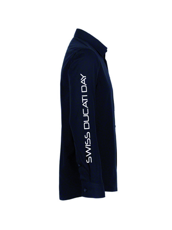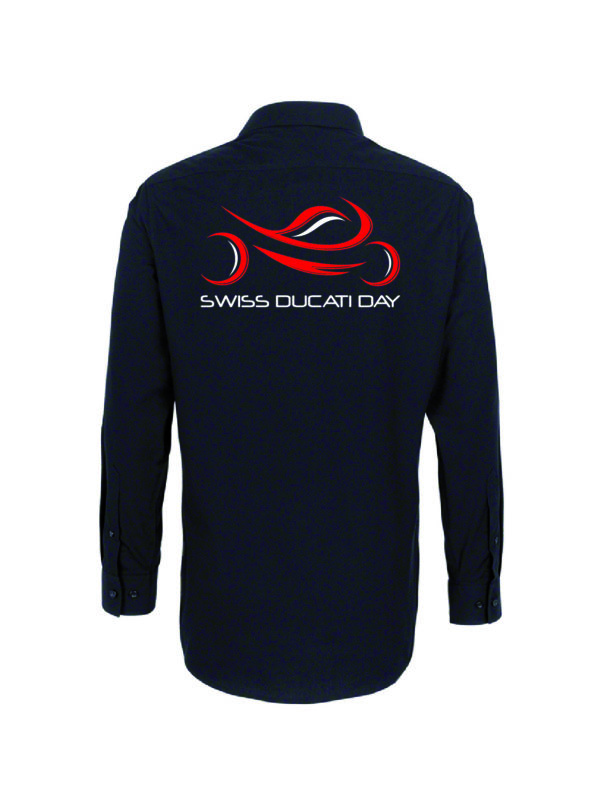 Langarm, schwarz, mit Swiss Ducati Day Logo auf der Rückseite und Schriftzug am Arm.
