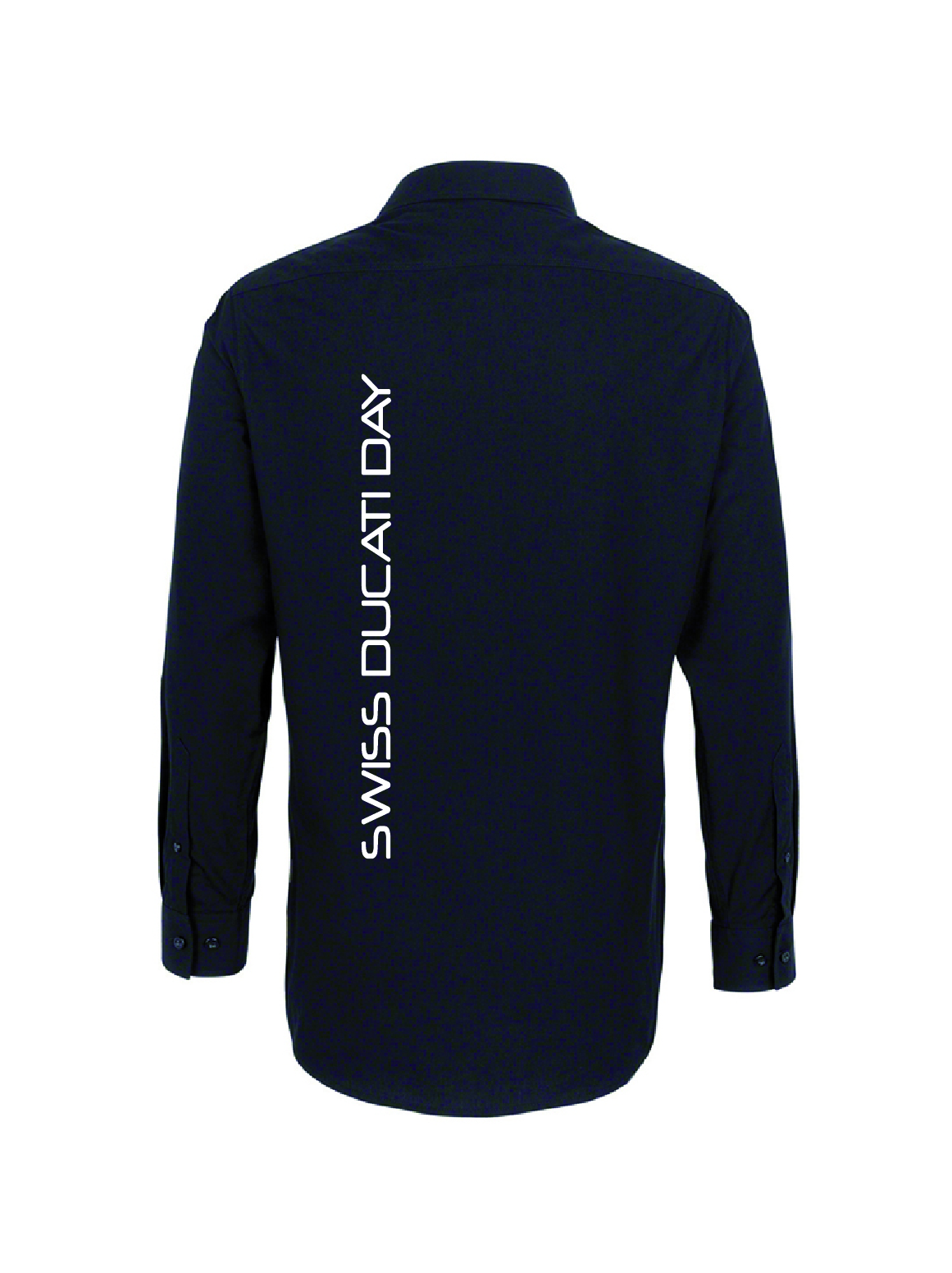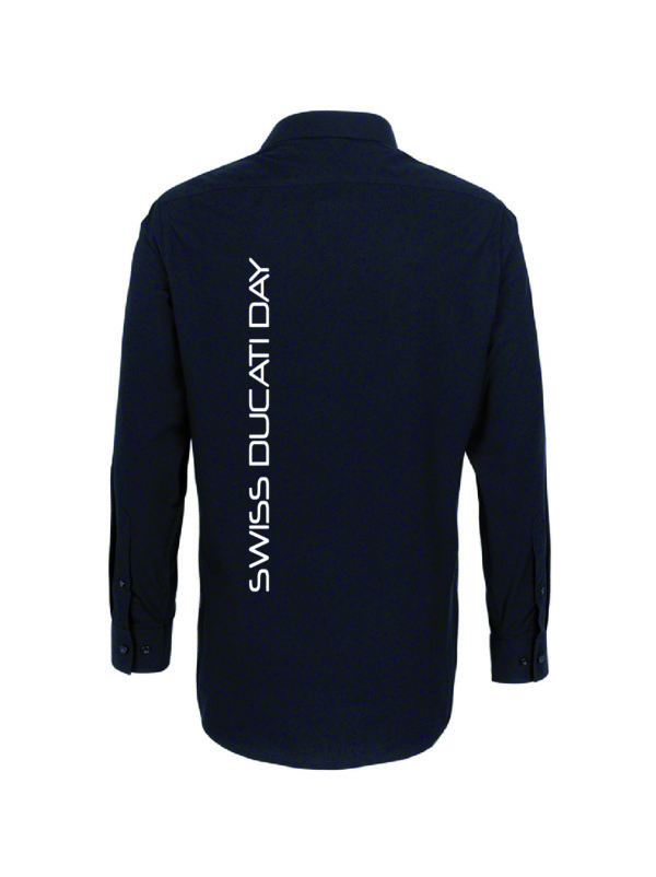 Langarm, schwarz, mit Swiss Ducati Day Schriftzug auf der Rückseite.