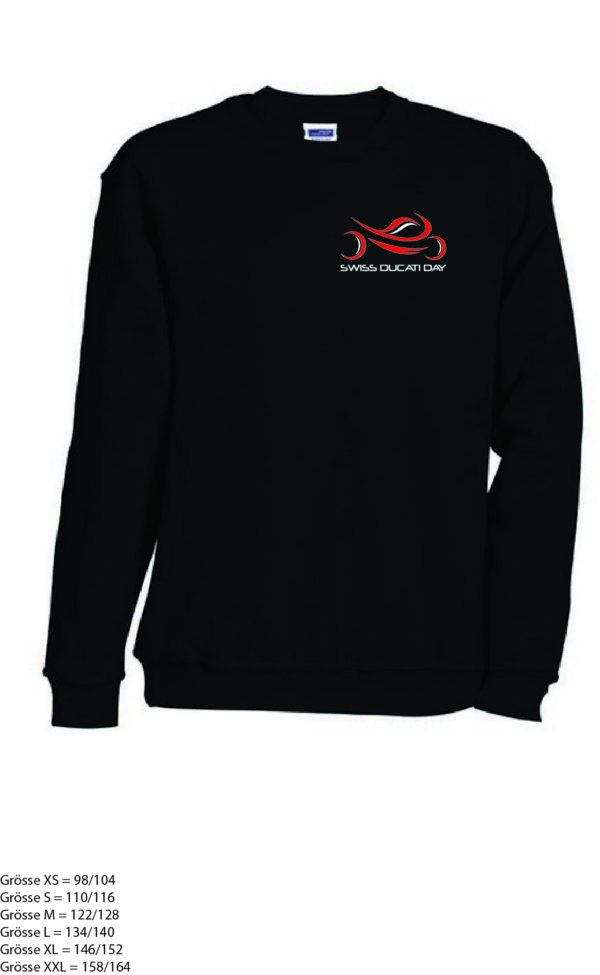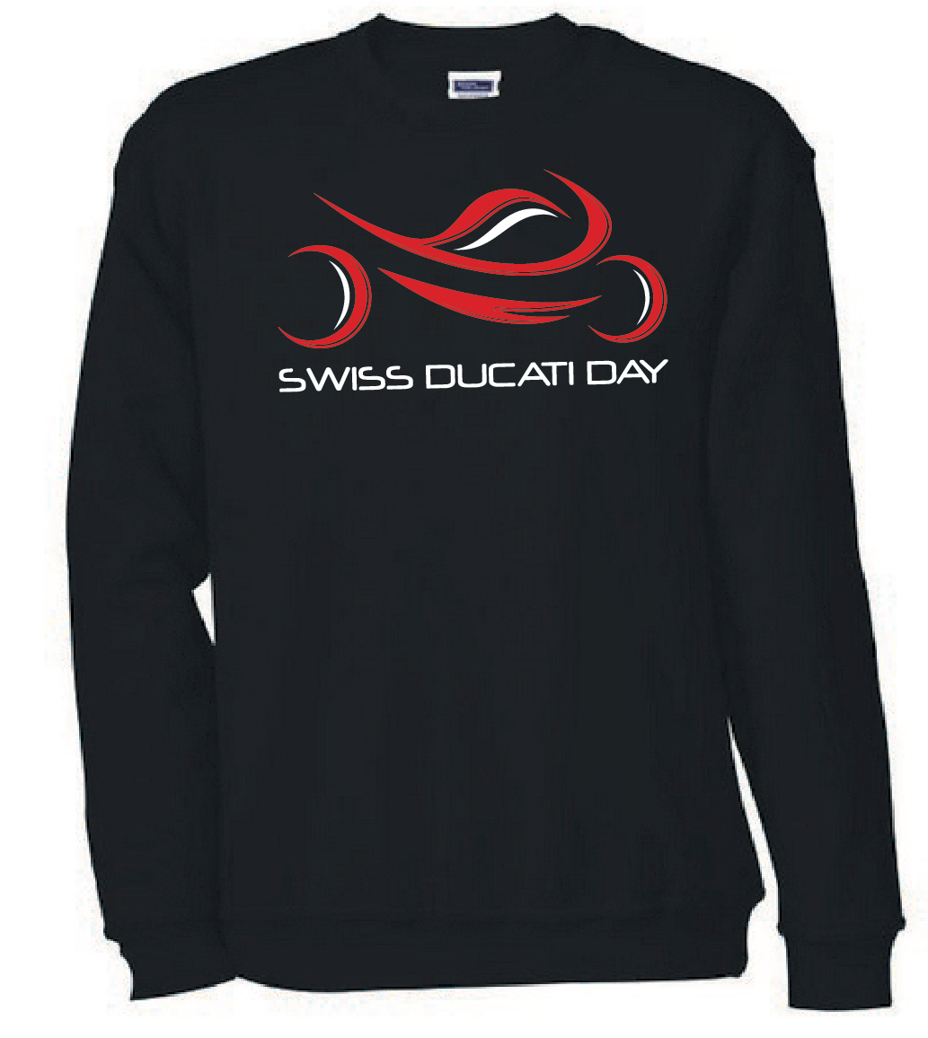 Schwarz, mit Swiss Ducati Day Logo auf der Rückseite (ab Grösse L).