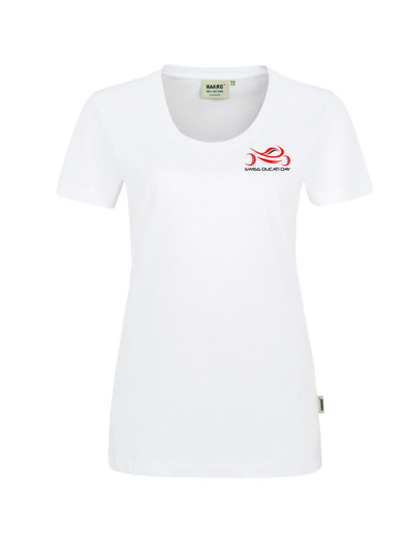 Women, Kurzarm, weiss, mit Swiss Ducati Day Schriftzug auf der Rückseite.