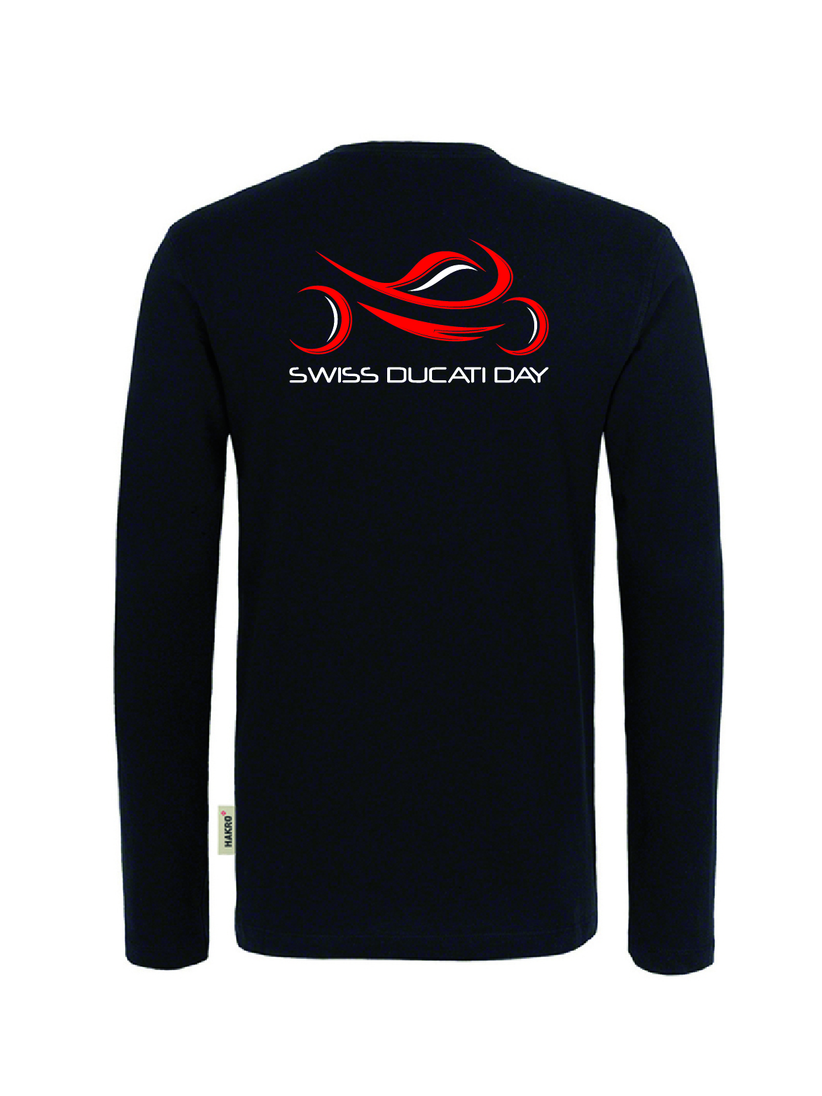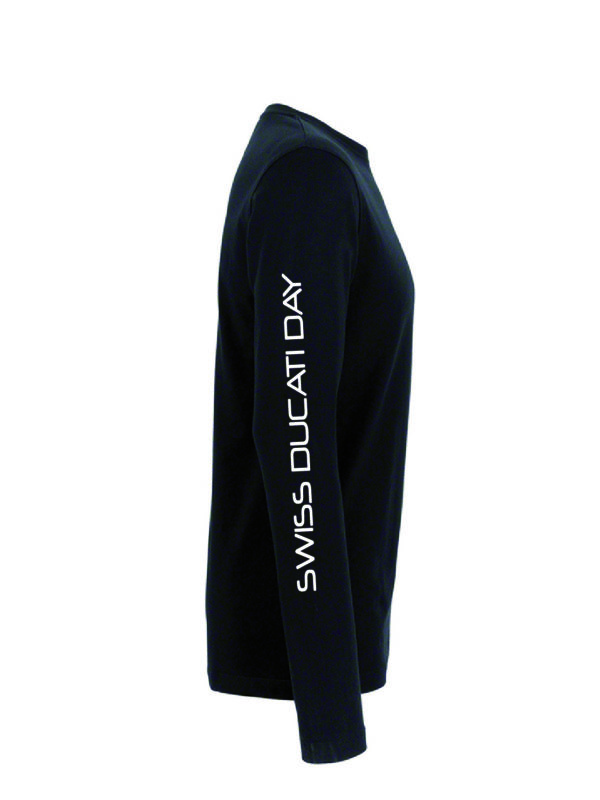 Langarm, schwarz, mit Swiss Ducati Day Logo auf der Rückseite und Schriftzug am Arm.