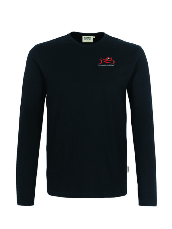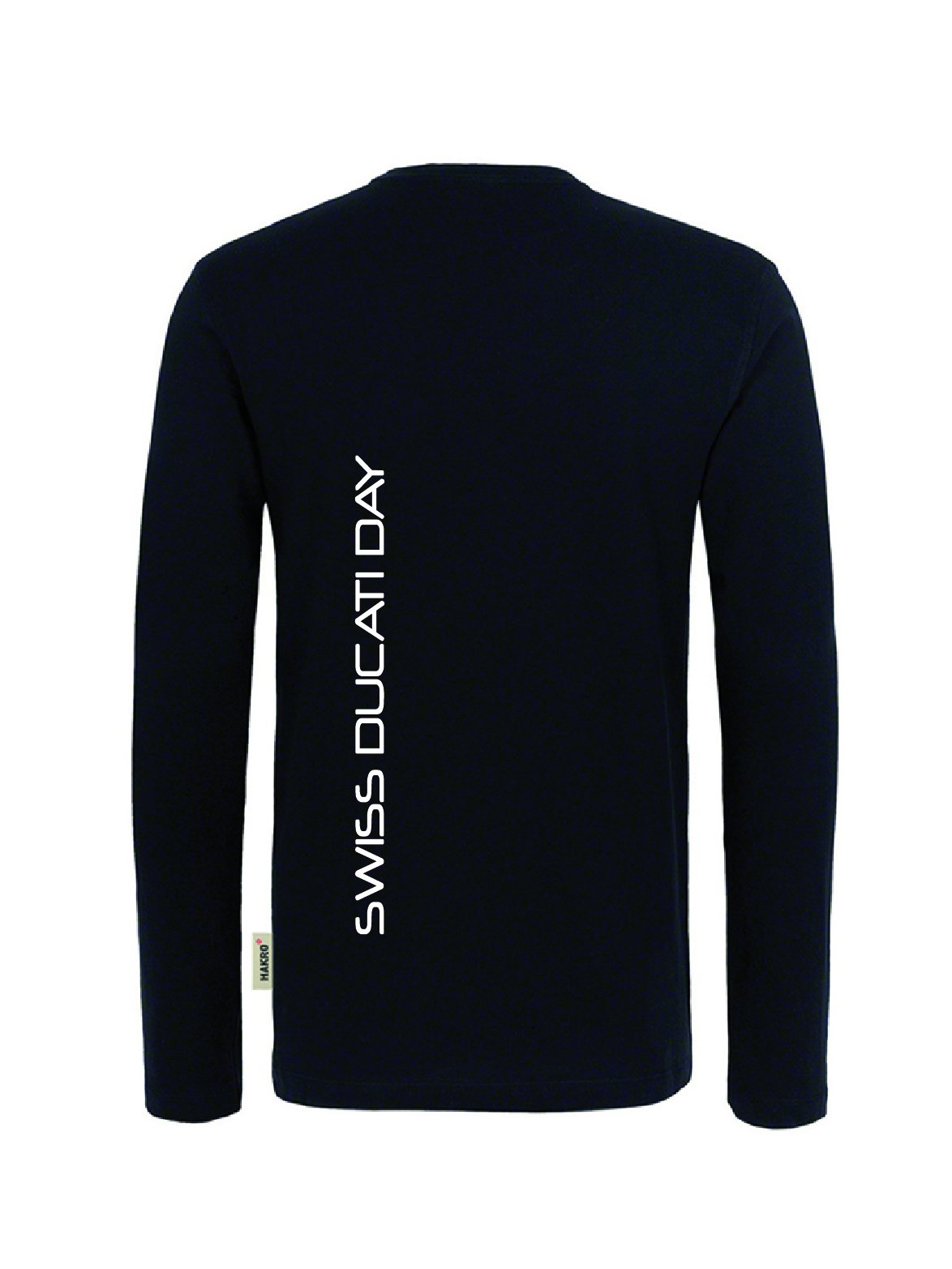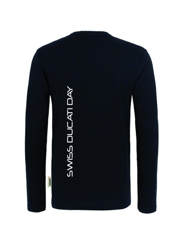 Langarm, schwarz, mit Swiss Ducati Day Schriftzug auf der Rückseite.