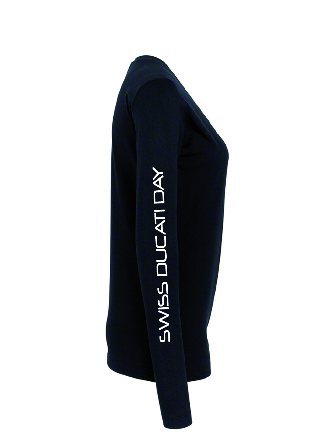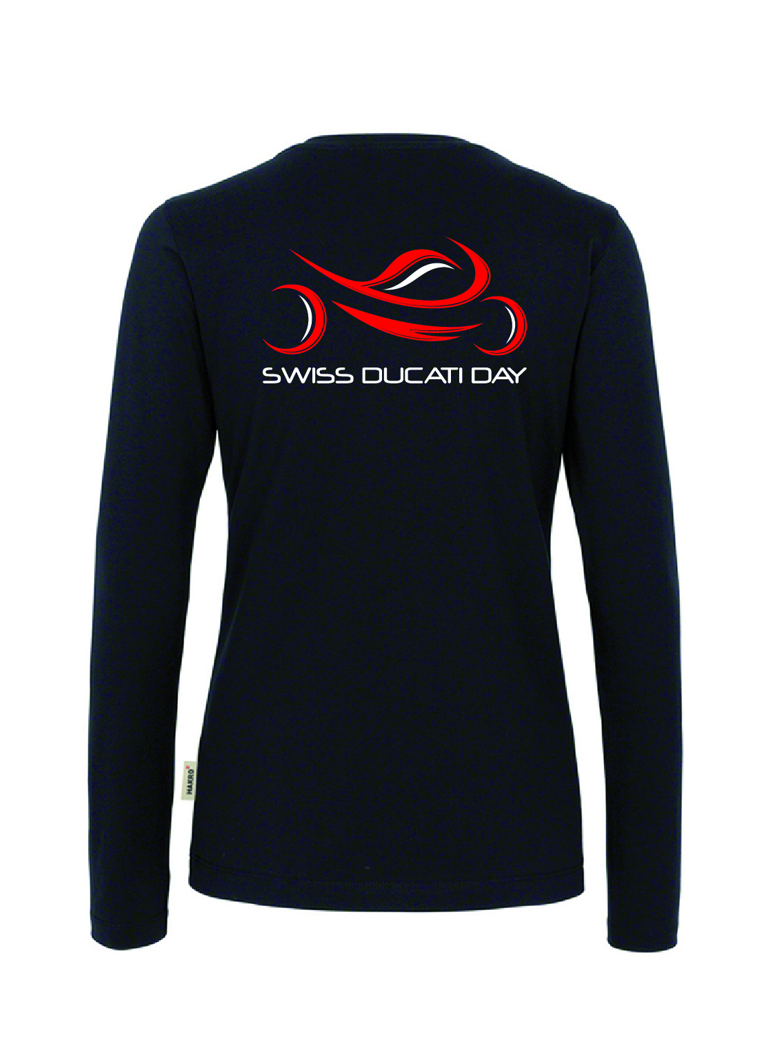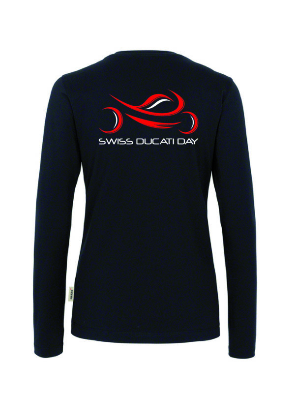 Women, Langarm, schwarz, mit Swiss Ducati Day Logo auf der Rückseite und Schriftzug am Arm.