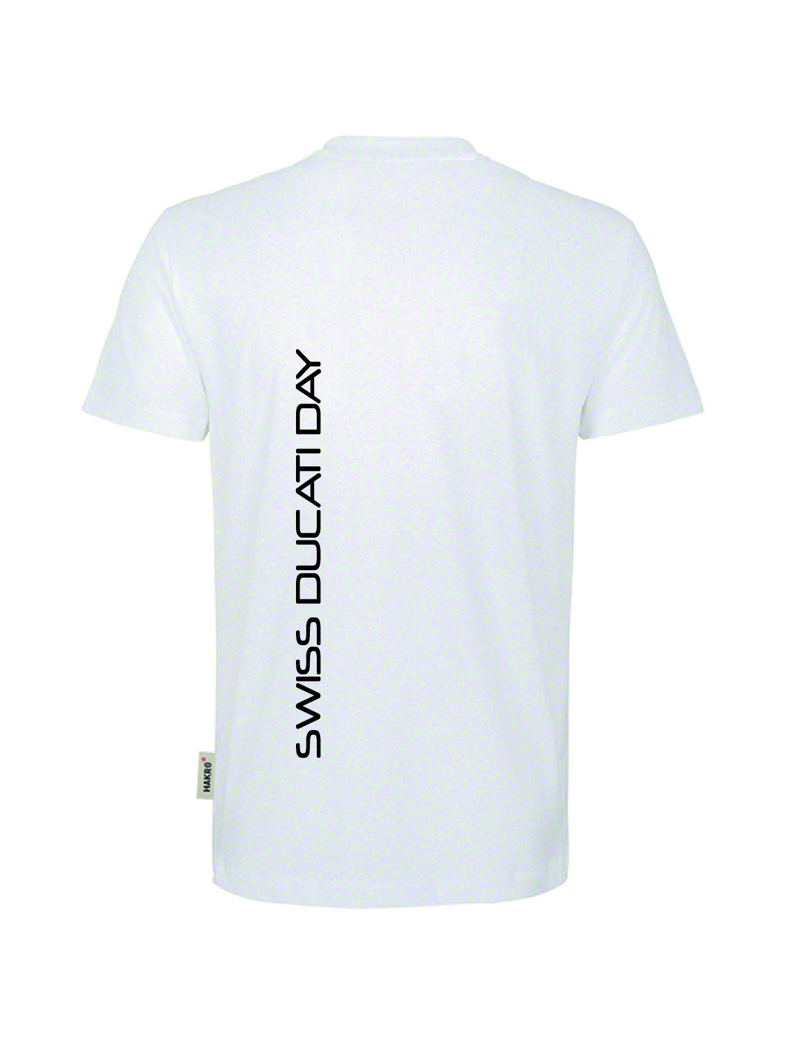 Weiss, mit Swiss Ducati Day Schriftzug auf der Rückseite.