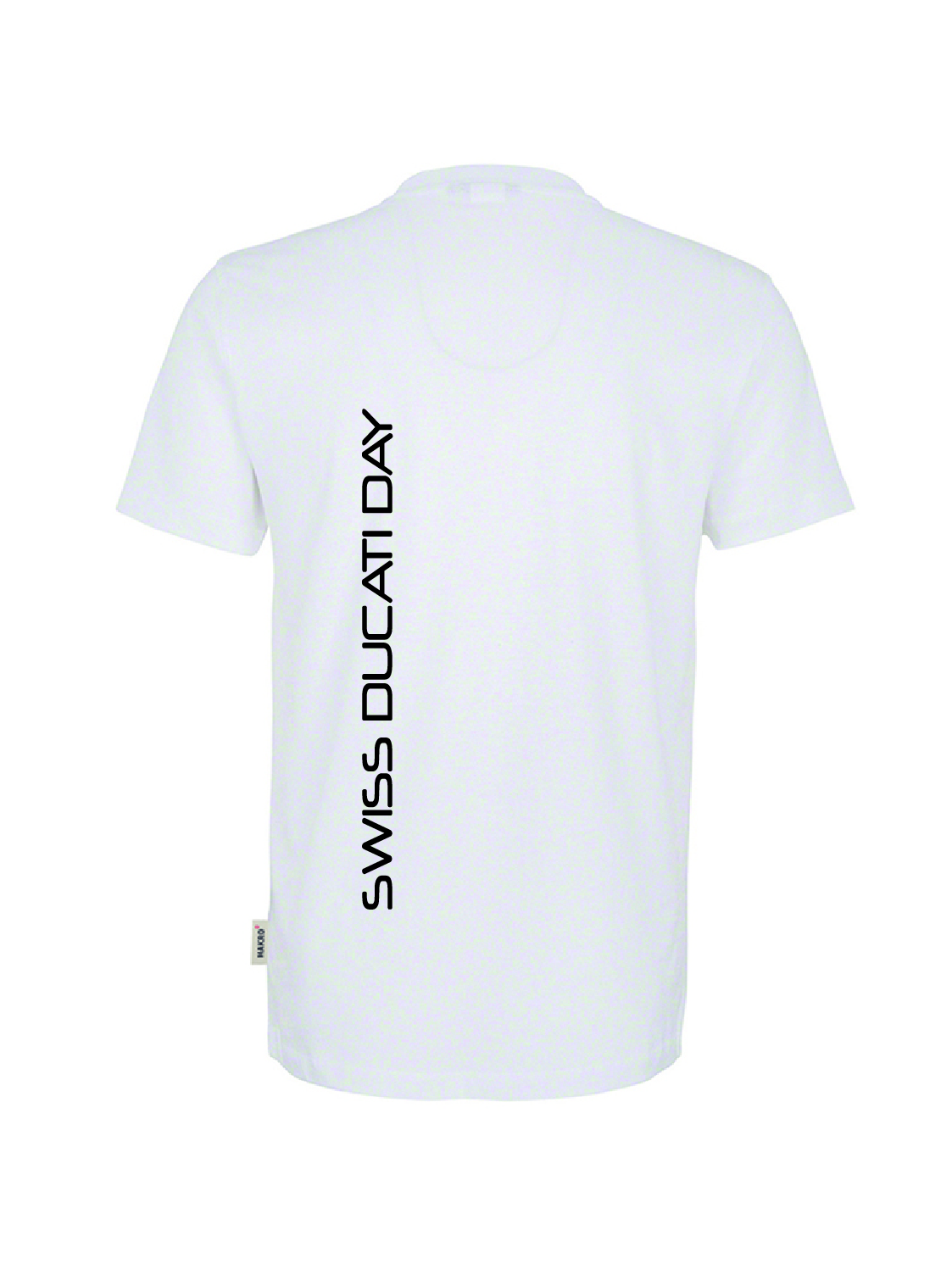 Weiss, mit Swiss Ducati Day Schriftzug auf der Rückseite.