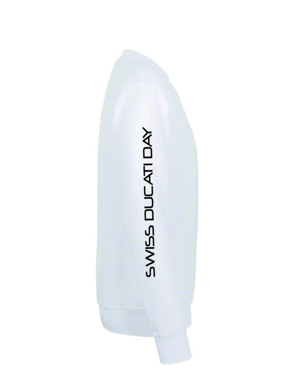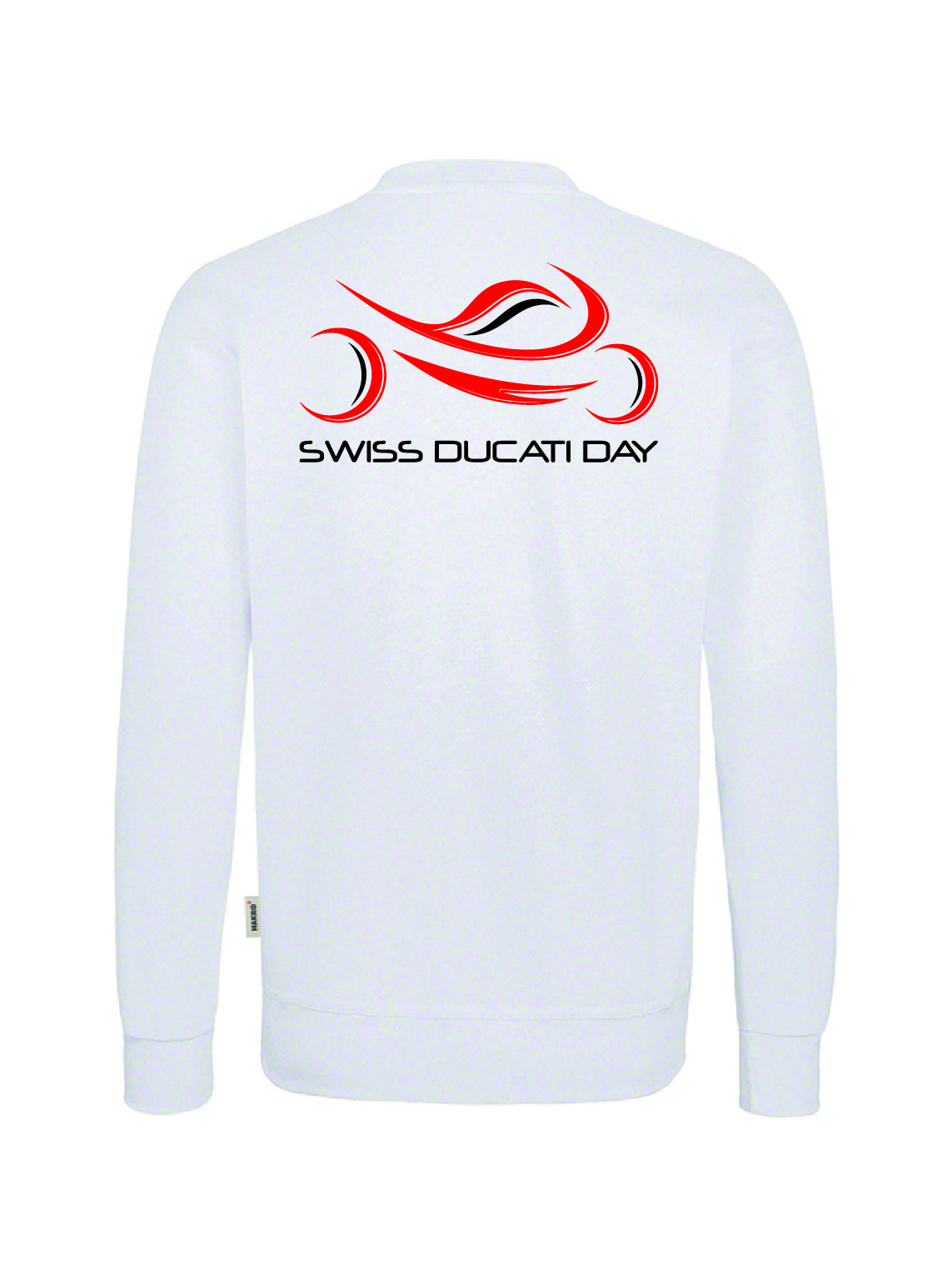 Weiss, mit Swiss Ducati Day Logo auf der Rückseite und Schriftzug am Arm.