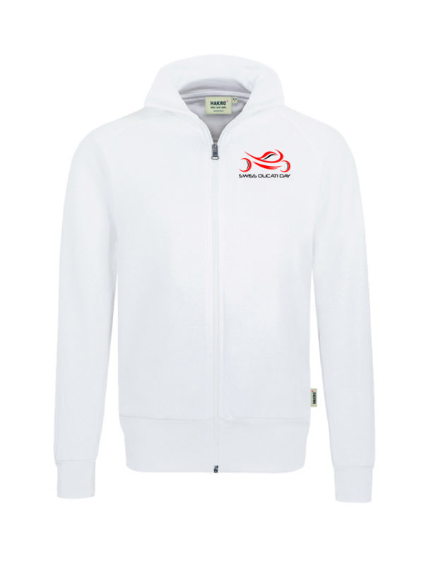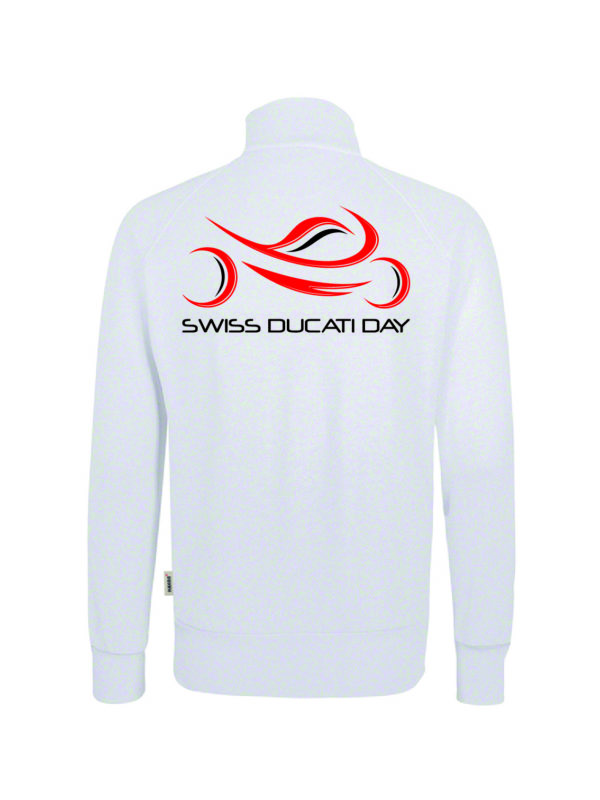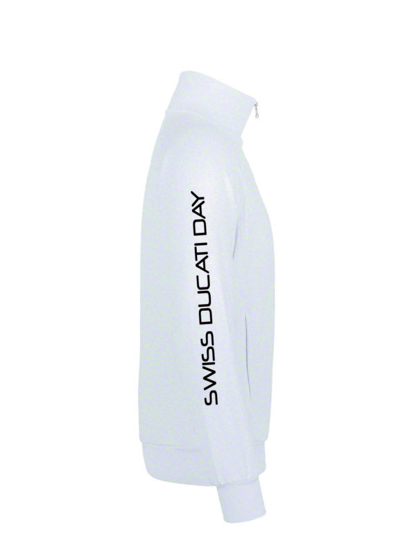 Weiss, mit Swiss Ducati Day Logo auf der Rückseite und Schriftzug am Arm.