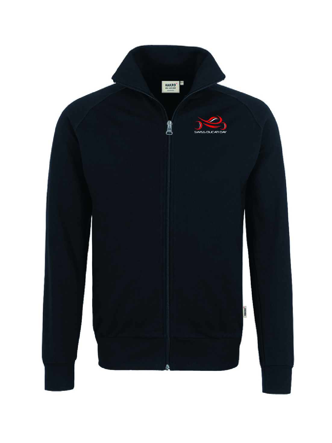Schwarz, mit Swiss Ducati Day Logo auf der Rückseite und Schriftzug am Arm.