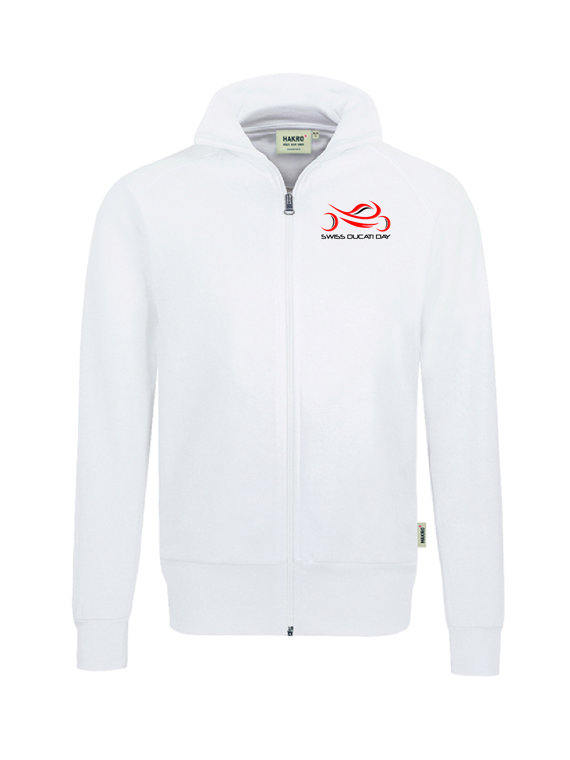 Weiss, mit Swiss Ducati Day Logo auf der Rückseite und Schriftzug am Arm.